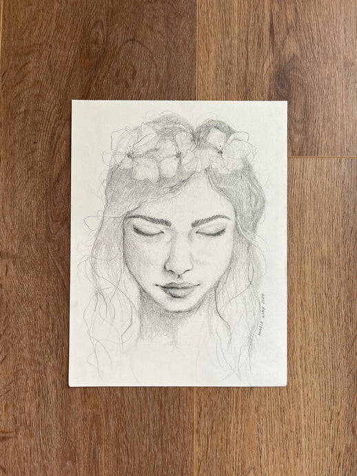 Original pencil sketches, thoughtfully created by Angele. Each portrait and figure study is hand-drawn with care, blending the elegance of the feminine form with the delicate beauty of florals. Graceful lines, subtle shading, and botanical details come together to create pieces that feel both timeless and poetic.