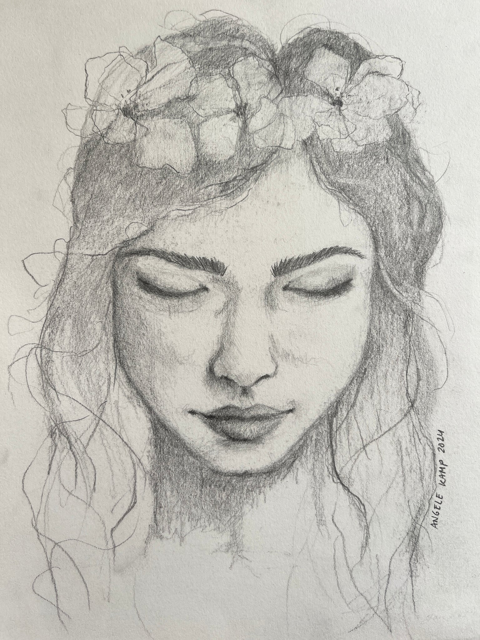 An original pencil sketch from the “Flora Donna” collection, combining the elegance of the female form with delicate floral details. Soft lines and subtle shading bring both figure and blooms to life, creating a piece that feels intimate and timeless. Perfect for adding sophistication to any modern home, and it pairs beautifully with Angele’s floral watercolor artwork.