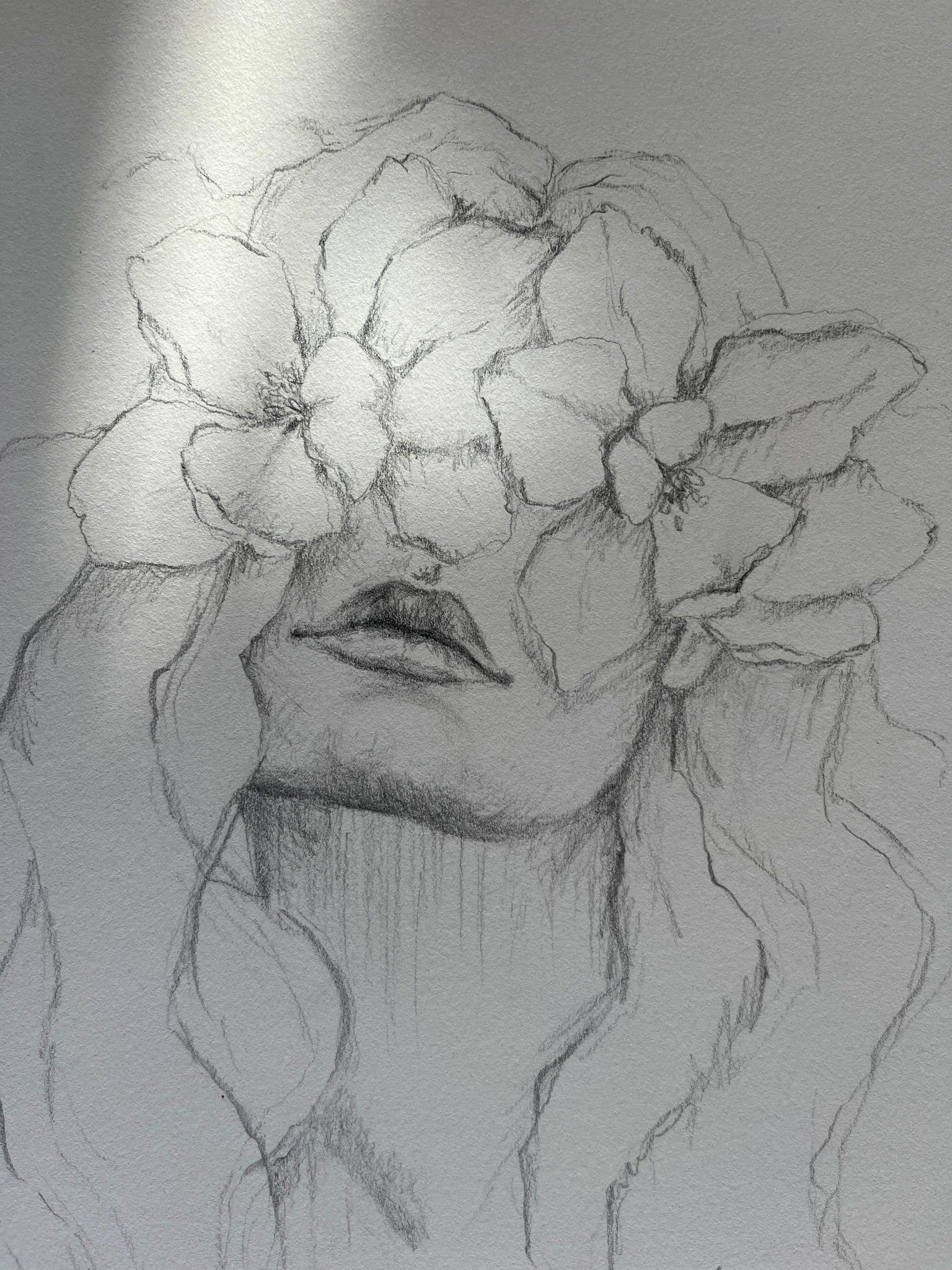 An original pencil sketch from the “Flora Donna” collection, combining the elegance of the female form with delicate floral details. Soft lines and subtle shading bring both figure and blooms to life, creating a piece that feels intimate and timeless. Perfect for adding sophistication to any modern home, and it pairs beautifully with Angele’s floral watercolor artwork.