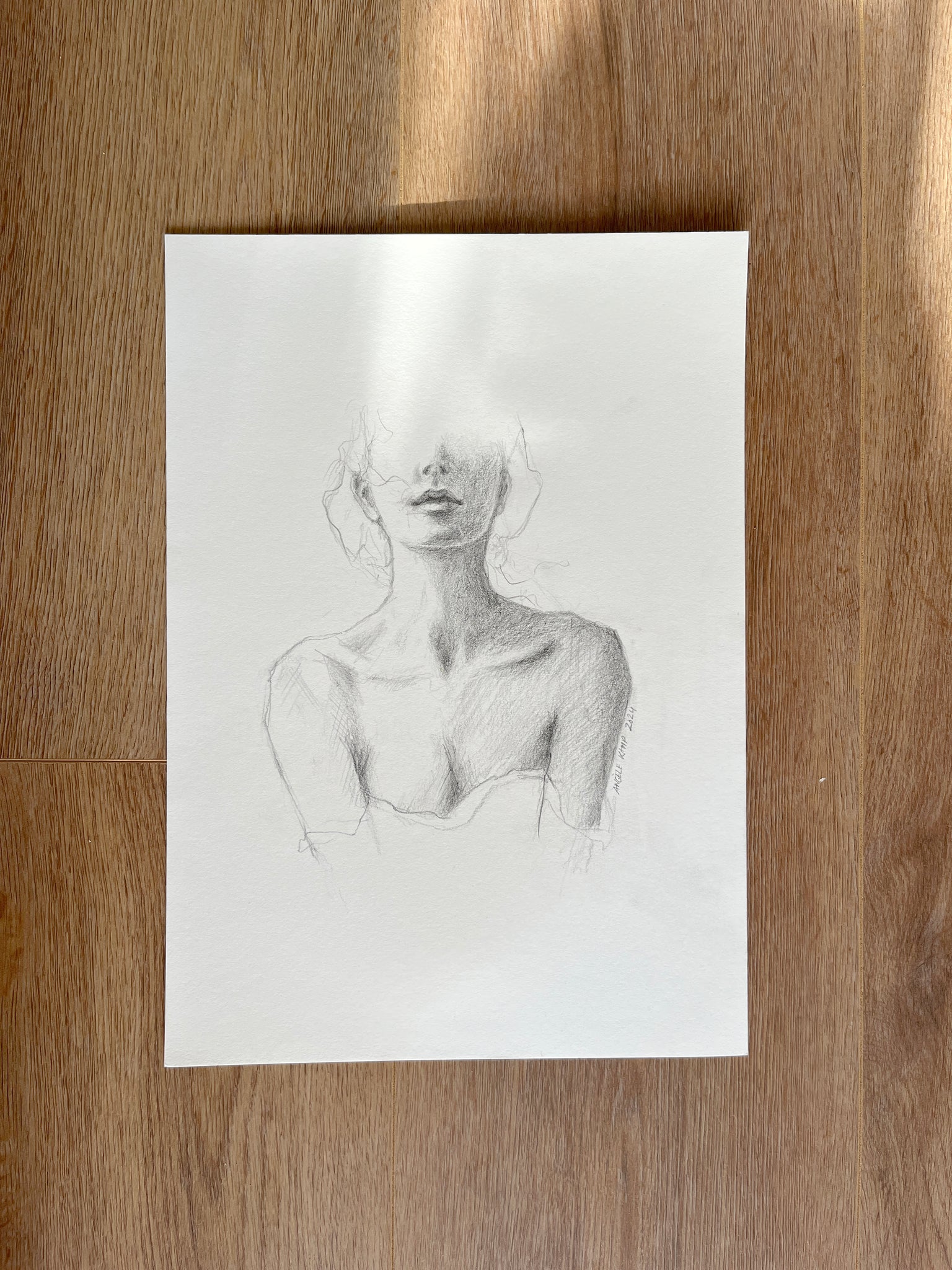 An original pencil sketch from the "Shadows of Her" collection, capturing the elegance and grace of the female form. Delicate lines and subtle shading bring each figure to life, creating a piece that feels intimate and timeless. Perfect for adding sophistication to any modern home, and it pairs beautifully with Angele’s floral watercolor artwork.
